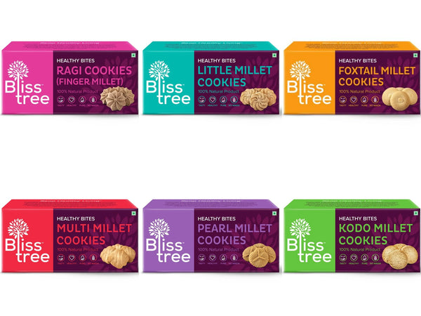 12 packs contains 2 x Foxtail Cookies, 2 x Kodo Cookies, 2 x Little Cookies, 2 x Multi-Millet Cookies, 2 x Ragi Cookies and 2 x Pearl Cookies (75g each) Power up and supercharge your health...